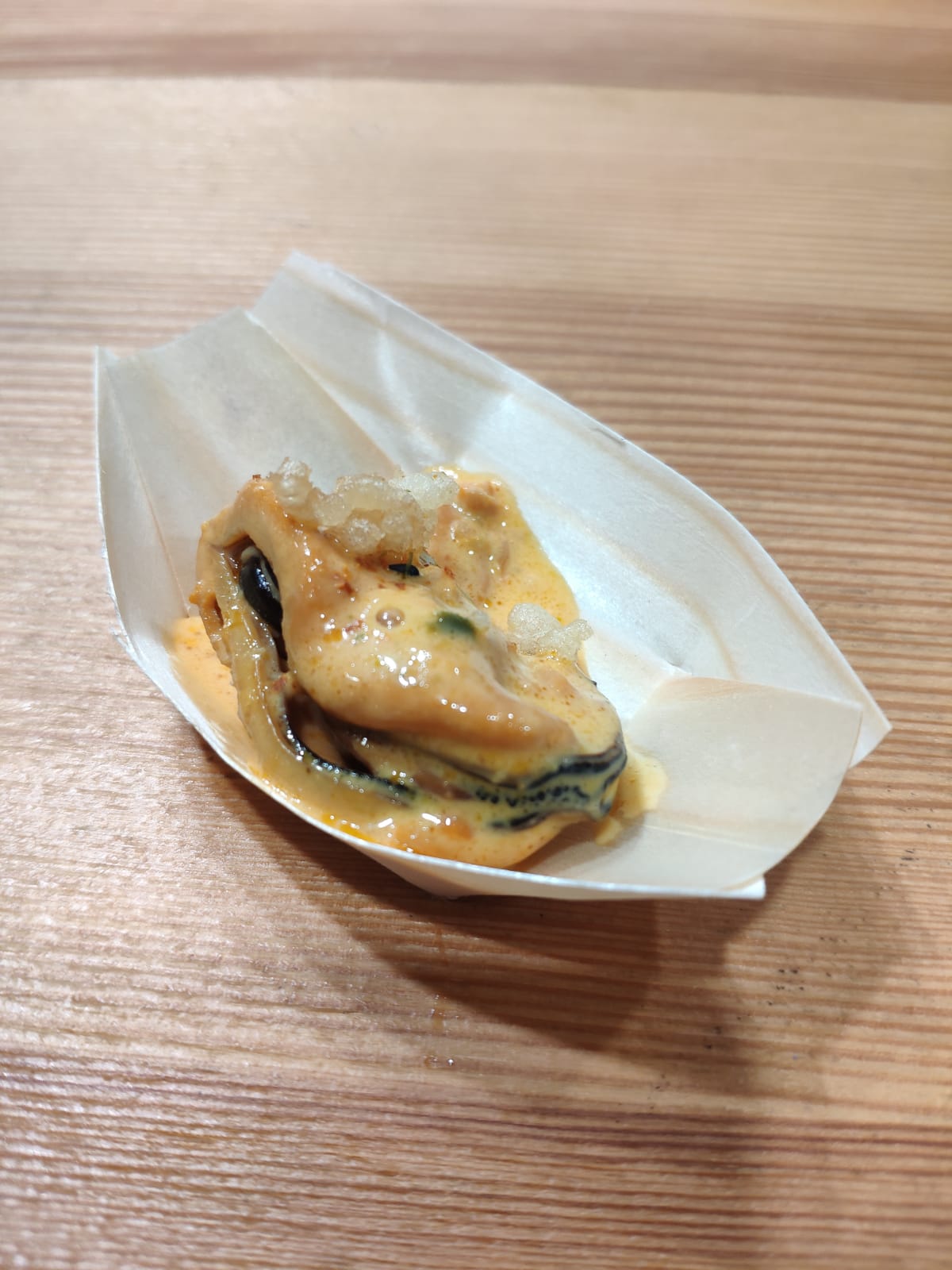 - Mejillón en escabeche emulsionado, tempura y sichimi togarashi